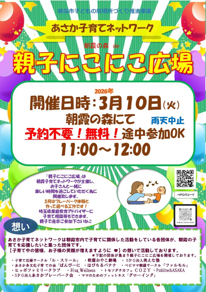親子にこにこ広場は、お子さんと一緒に「楽しい」「安心」「つながり」